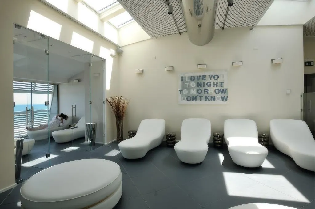 Met schitterend uitzicht op de Adriatische Zee geniet het charmante luxe hotel Excelsior Pesaro van een toplocatie, direct aan het fijne zandstrand. Het centrum van Pesaro met het Sea Museum en de Piazza del Popolo ligt op slechts een korte wandeling. Andere plaatsen langs de kust, zoals Fano, Cattolica, Riccione of Rimini, zijn met een korte autorit te bereiken. Het hotel creëert de glamoureuze sfeer van de jaren 50 opnieuw, maar dan op een stijlvolle, eigentijdse manier, met finesse en elegantie in elk detail. De kamers zijn licht en beschikken over gemeubileerde terrassen, marmeren badkamers, internetverbinding, lcd-satelliettelevisie en hifisystemen. Zakenreizigers zullen de gratis wifi in het hele hotel en de uitstekende vergaderfaciliteiten waarderen. Het hotel biedt een eersteklas wellnessruimte met een spacentrum, fitnesscentrum en een binnenzwembad met spectaculair uitzicht op zee. In het eigen restaurant kunnen gasten genieten van heerlijke regionale gerechten. Een fantastische keuze voor wie op zoek is naar luxe en stijl. Toegang tot de spa per dag, per persoon: € 35, 00 Toegang tot de spa is toegestaan vanaf 14 jaar; tot 18 jaar indien samen met een volwassene. Reserveren verplicht voor toegang tot de spa.
