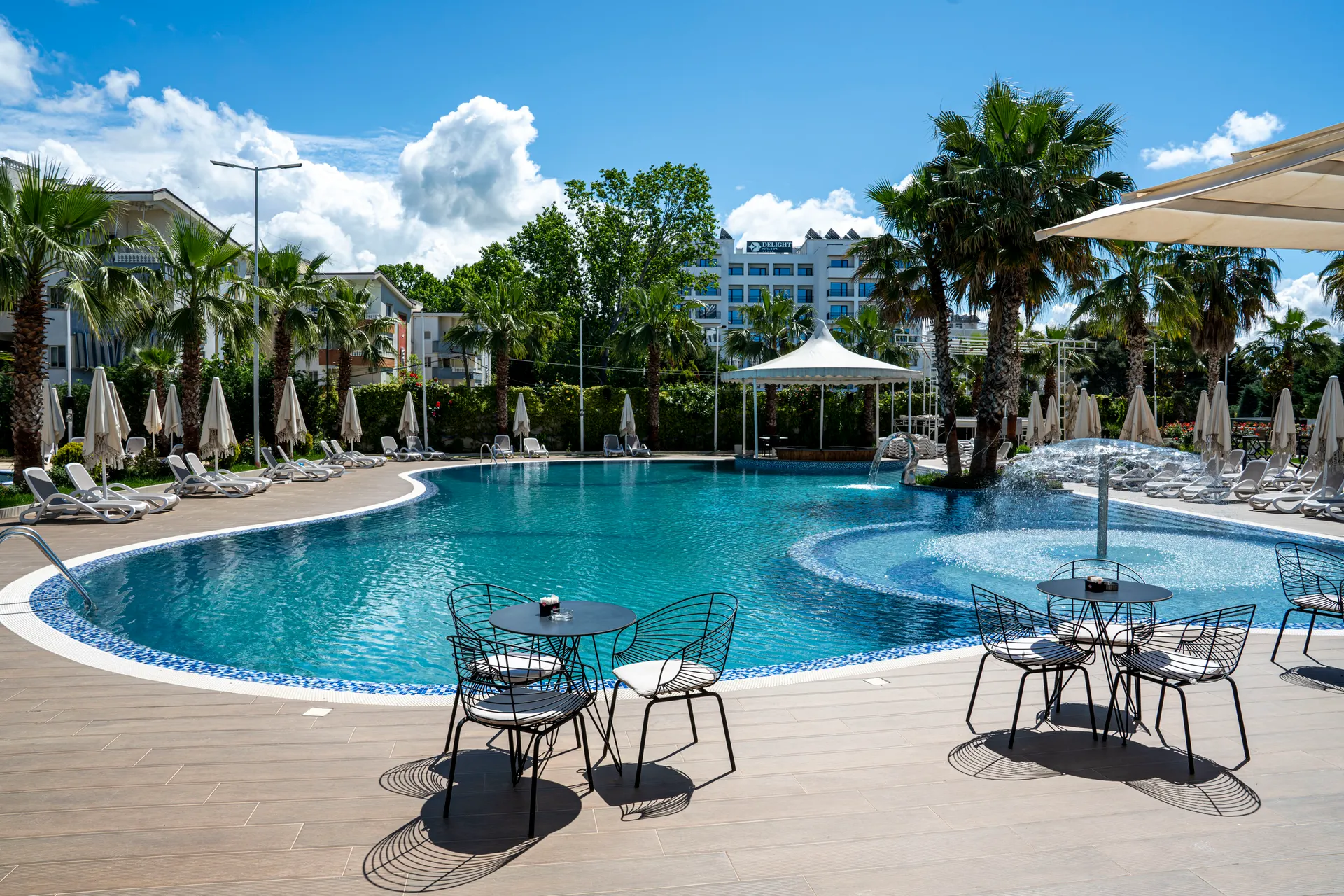 Leuke tijd gehad in Hotel Resort Spa Henry. Personeel over het algemeen vriendelijk, onderdanig vooral. Zijn harde werkers vooral in de schoonmaak, keuken en bediening. Eten (All Inclusive waren we) was ok; lekker ontbijt, lunch en avondeten waren wat minder, niet veel afwisseling en voor vegetariërs als wij was het elke dag puzzelen hiermee! Minpuntje is dat tussendoortje/snack om 16.30u buiten wordt gezet wat veel ongedierte aantrekt. Kamers waren netjes, elke dag schoonmaak. Bedden prima, fijne douche. Alles gaat op de Albanese leefstijl en tempo; airco 3 dagen stuk, elke dag aangegeven, maar alles op z'n tijd :) Zwembad en glijbanen zijn een feest voor de kinderen, entertainment Frans georiënteerd maar ontzettend aardig, wordt veel georganiseerd, spreken allemaal ook Engels.
