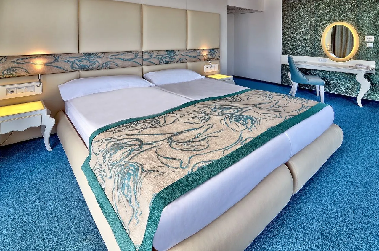 In de kamers zijn airconditioning en verwarming voorhanden. De gasten kunnen vanaf het balkon of het terras van het uitzicht op zee genieten. De met vloerbedekking uitgeruste kamers beschikken over een tweepersoonsbed. Er zijn aparte slaapkamers aanwezig. Extra bedden kunnen worden aangevraagd. Bovendien zijn een kluis, een minibar en een bureau beschikbaar. Voor optimaal comfort zorgen een telefoon met directe buitenlijn, satelliettelevisie en Wi-Fi (kosteloos). Een keuze uit verschillende kussens belooft een heerlijk comfort. In de badkamer – uitgerust met een bad – vinden de gasten badjassen. Rolstoelvriendelijke kamers kunnen worden geboekt. Het verblijf beschikt over niet-rokerskamers.