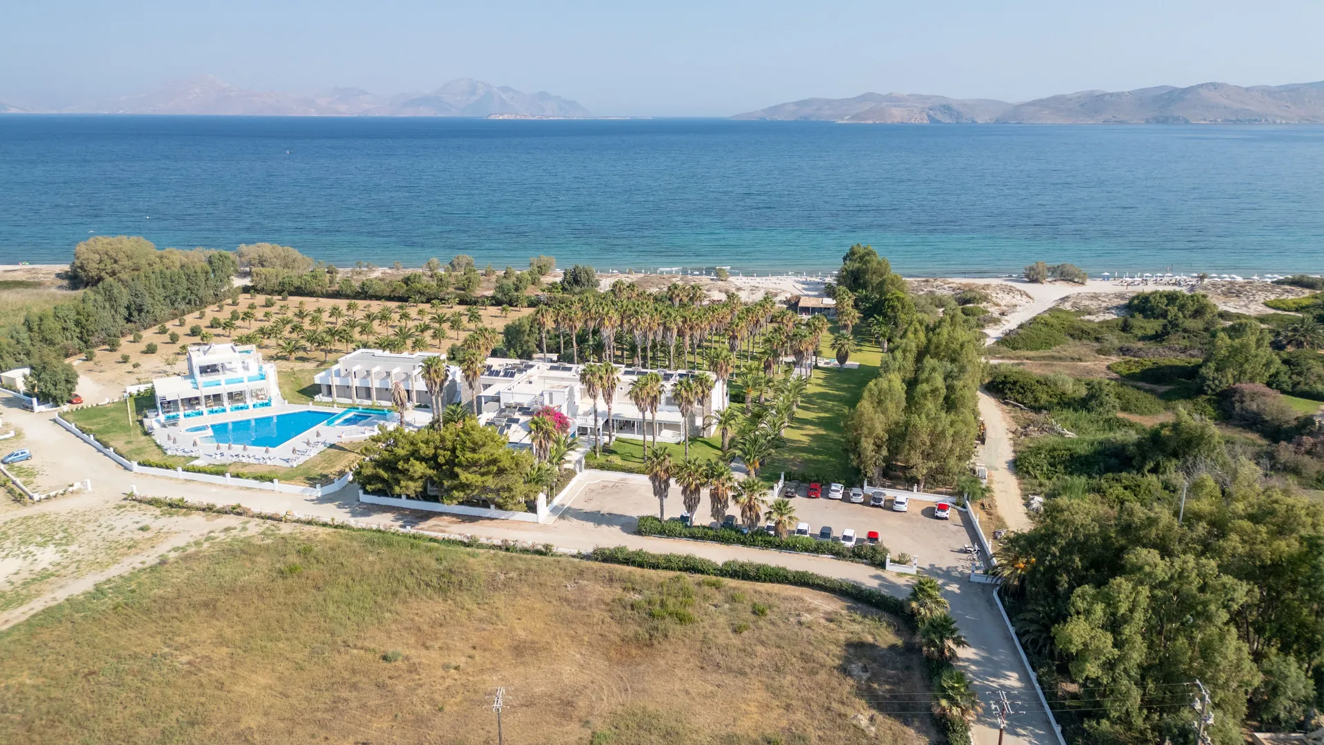 Dit hotel ligt direct aan het zandstrand, centraal in Marmari.