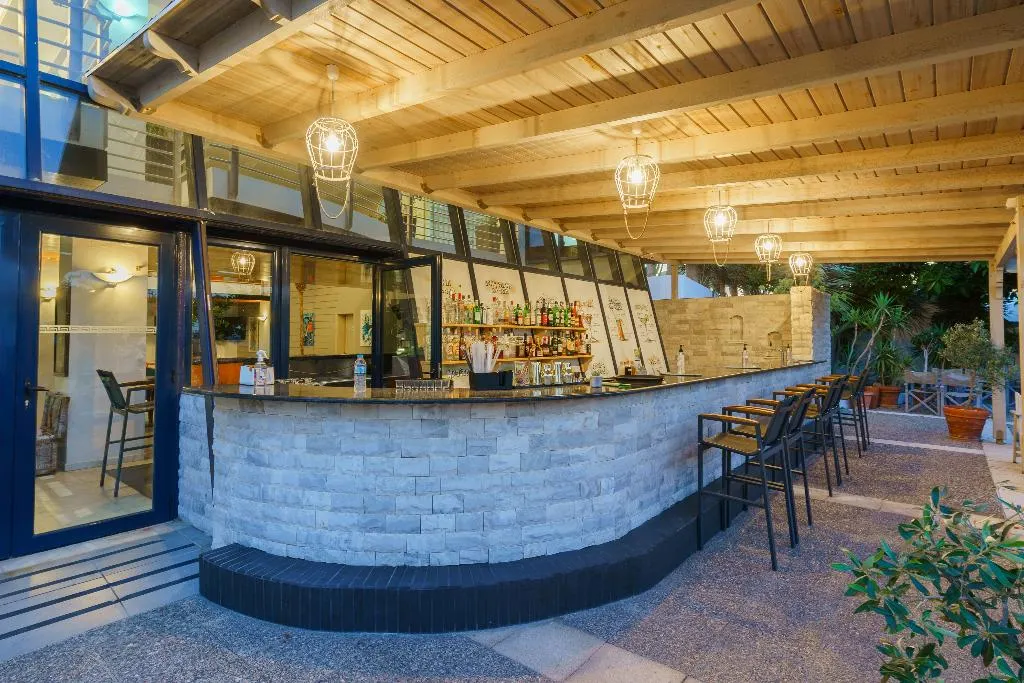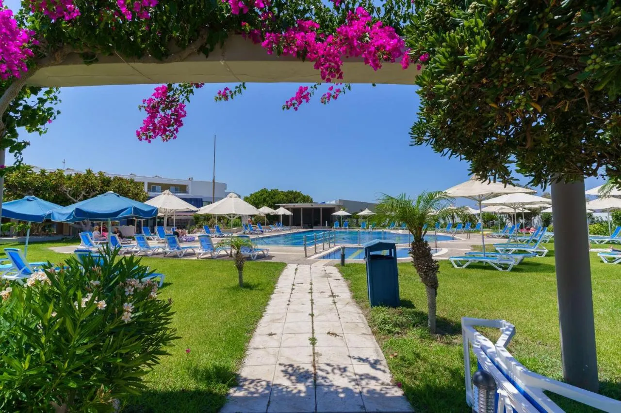 Het hotel bevindt zich in Tigaki, direct aan het strand, op een rustige plek.