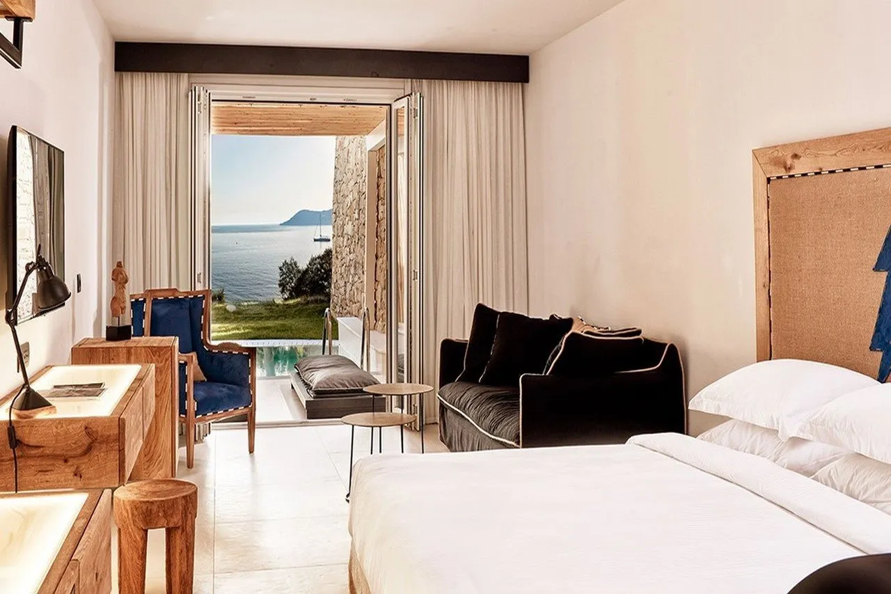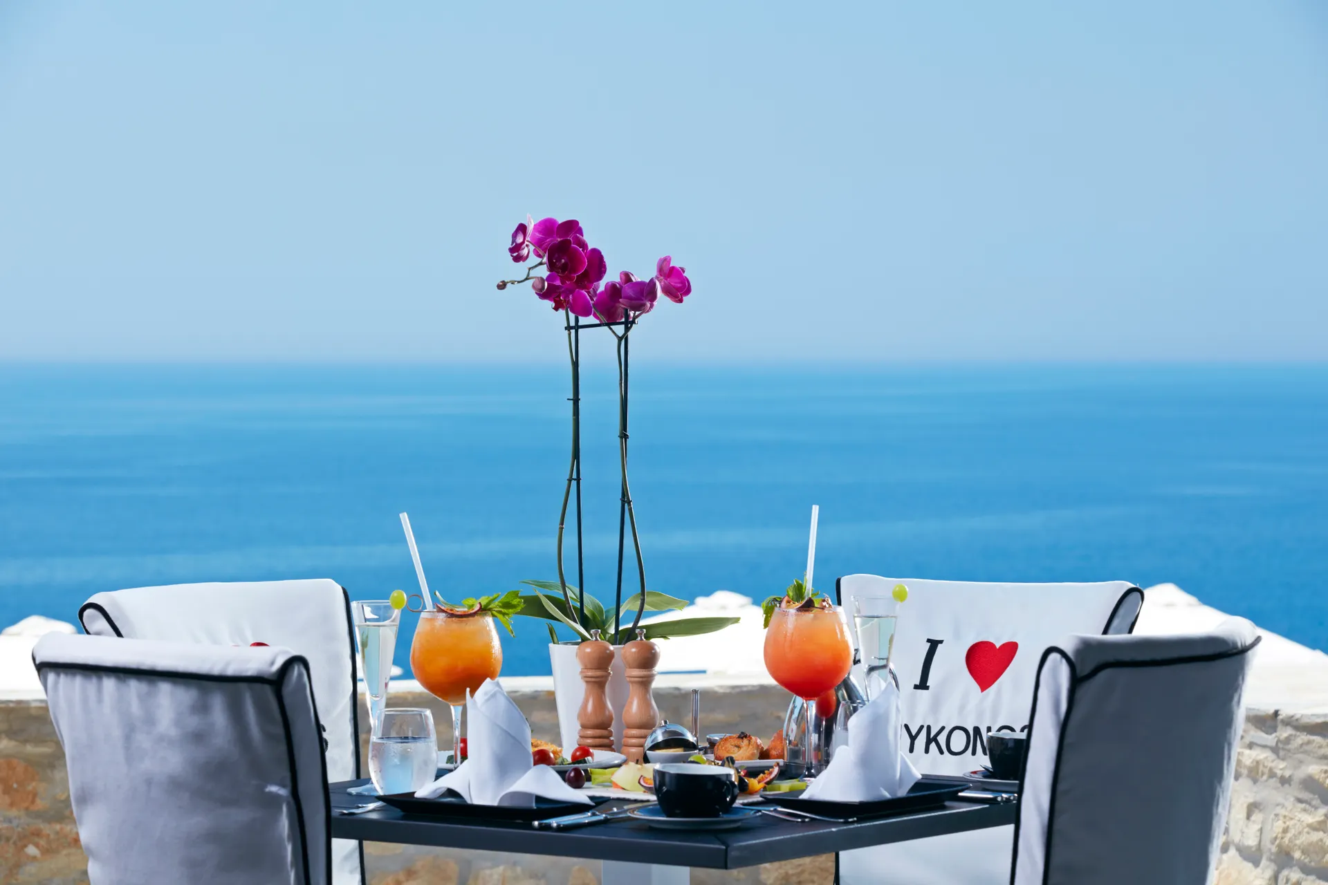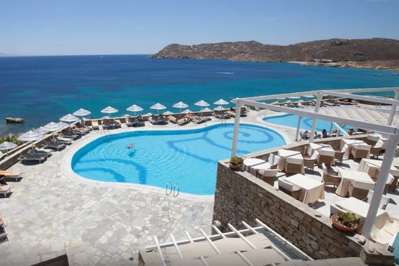 Dit hotel ligt op het eiland Mykonos en bevindt zich slechts ongeveer 50 m van het zandstrand Elia. Het ligt ongeveer 3 km buiten het centrum van Ano Mera. De stad Mykonos ligt op 12 km afstand en is gemakkelijk met de bus te bereiken. De dichtstbijzijnde bushalte bevindt zich op enkele minuten loopafstand (circa 300 m). Binnen ongeveer 30 minuten kunt de luchthaven van Mykonos met de hotelbus bereiken.