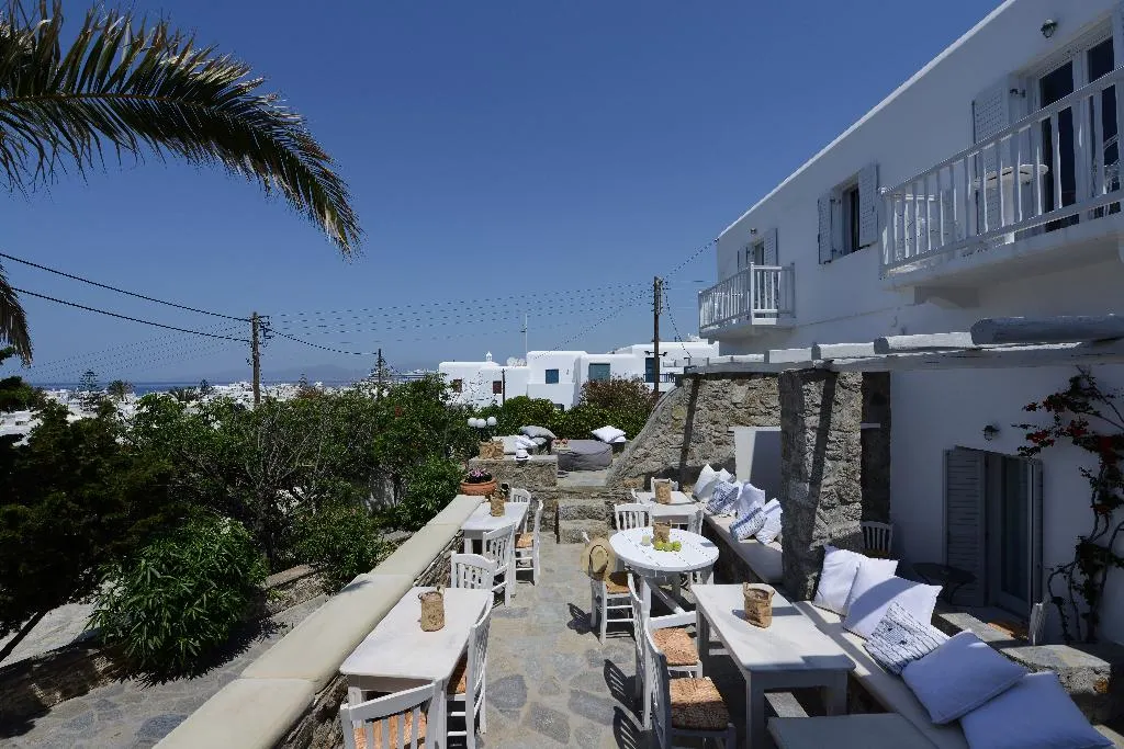 Dit hotel ligt in een woonwijk in het hart van de hoofdstad Mykonos, in de buurt van mogelijkheden om te winkelen, restaurants, taveernes en uitgaansleven. Op ca. 300 m afstand bevindt zich een bushalte, waarmee u de rest van het eiland goed bereiken kunt. De haven ligt op ca. 1 km afstand, naar de luchthaven van het eiland is het ongeveer 2,5 km.