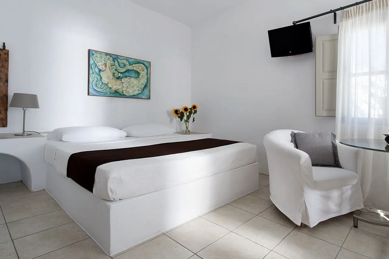 A perfectly located, very pleasant homebase for exploring the unique island(s) of Santorini! The staff was super friendly throughout our 7-day stay and their hospitality as well as service was excellent (e.g. valuable tips for exploring the island and a prompt fix of a leaky tap in the bathroom). Our balcony was well equipped with a set of sunbeds, parasol and a table with two seats, offering the promised spectacular view of the Santorini caldera, as well as the other villages and islands. From this balcony both sunrise and sunset can be enjoyed and become truly unforgettable experiences. In addition, luxurious bars and restaurants with equally spectacular views are within walking distance (but: "mind the steps"). We highly recommend this beautiful place to stay!