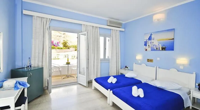 Het hotel bevindt zich in een rustig deel van Kamari, op een afstand van maar ongeveer 150 m van het strand, 100 m van de bushalte en 8 km van de stad Fira.