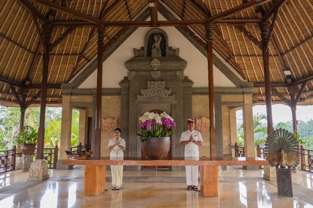 Het resort heet de gasten in Bali welkom.