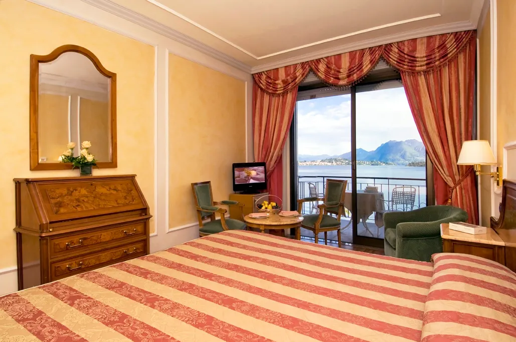 Het hotel ligt tussen volgroeide bomen en elegante tuinen, direct aan het Lago Maggiore. Het bevindt zich midden in het centrum van Baveno, met veel winkels, restaurants, bars en pubs, evenals een toeristeninformatiecentrum. Het is slechts een paar minuten lopen naar het zandstrand en het park. Het treinstation ligt op ongeveer 500 meter van het hotel. Dit charmante hotel, gerenoveerd in 2008, biedt 374 kamers en een scala aan moderne conferentie- en sportfaciliteiten. De beschikbare diensten van het hotel omvatten een 24-uursreceptie, een hotelkluis, een wisselkantoor, een garderobe, een lift, een restaurant en een tv-lounge. Roomservice en een wasservice, evenals een garage, zijn beschikbaar tegen een toeslag. Als alternatief voor zaken en sport, kunnen kunstliefhebbers genieten van de regelmatige tentoonstellingen in de kunstgalerie van Hotel Simplon, die aan het hotel is verbonden. Na een enerverende dag kunnen gasten ontspannen met een aperitief in een van de 2 bars, voordat ze genieten van een maaltijd in een van de restaurants met uitzicht op het meer. De eenpersoons- en tweepersoonskamers bieden uitzicht op de bergen en zijn voorzien van houten vloeren en mozaïekwerk in de en-suite badkamers. Sommige kamers hebben een balkon. Alle kamers zijn uitgerust met een bad of douche en een haardroger, airconditioning (half juni tot half september), centrale verwarming, minibar, satelliet-/kabeltelevisie, 2 directe telefoons, draadloos internet en een kluis. De superior kamers zijn groot en licht en hebben ook uitzicht op de bergen. Het houtwerk en de kostbare stoffen creëren een elegante sfeer, die zorgt voor een zeer aangenaam verblijf.