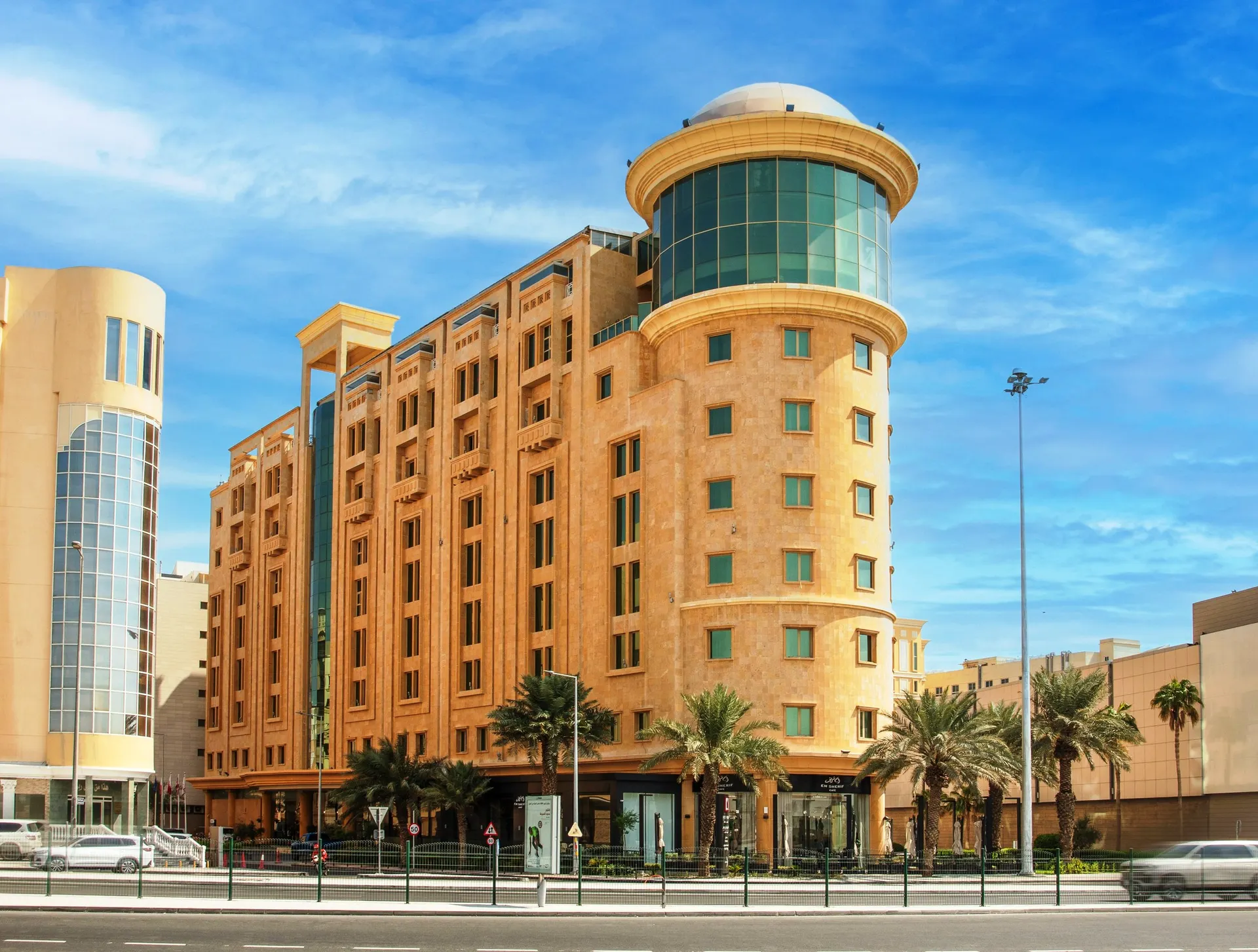 Dit stadshotel bevindt zich in het hart van de diplomaten- en zakenwijk van Doha. Het winkelcentrum Centre Point is te voet in 15 minuten te bereiken en attracties als de Al Saad sportclub, het Nationale Theater, de dierentuin van Doha, het Nationale Museum, de Doha zeilclub en de paardenrenbaan liggen allemaal dicht bij het hotel. De internationale luchthaven Doha ligt op ongeveer 10 km van het hotel.