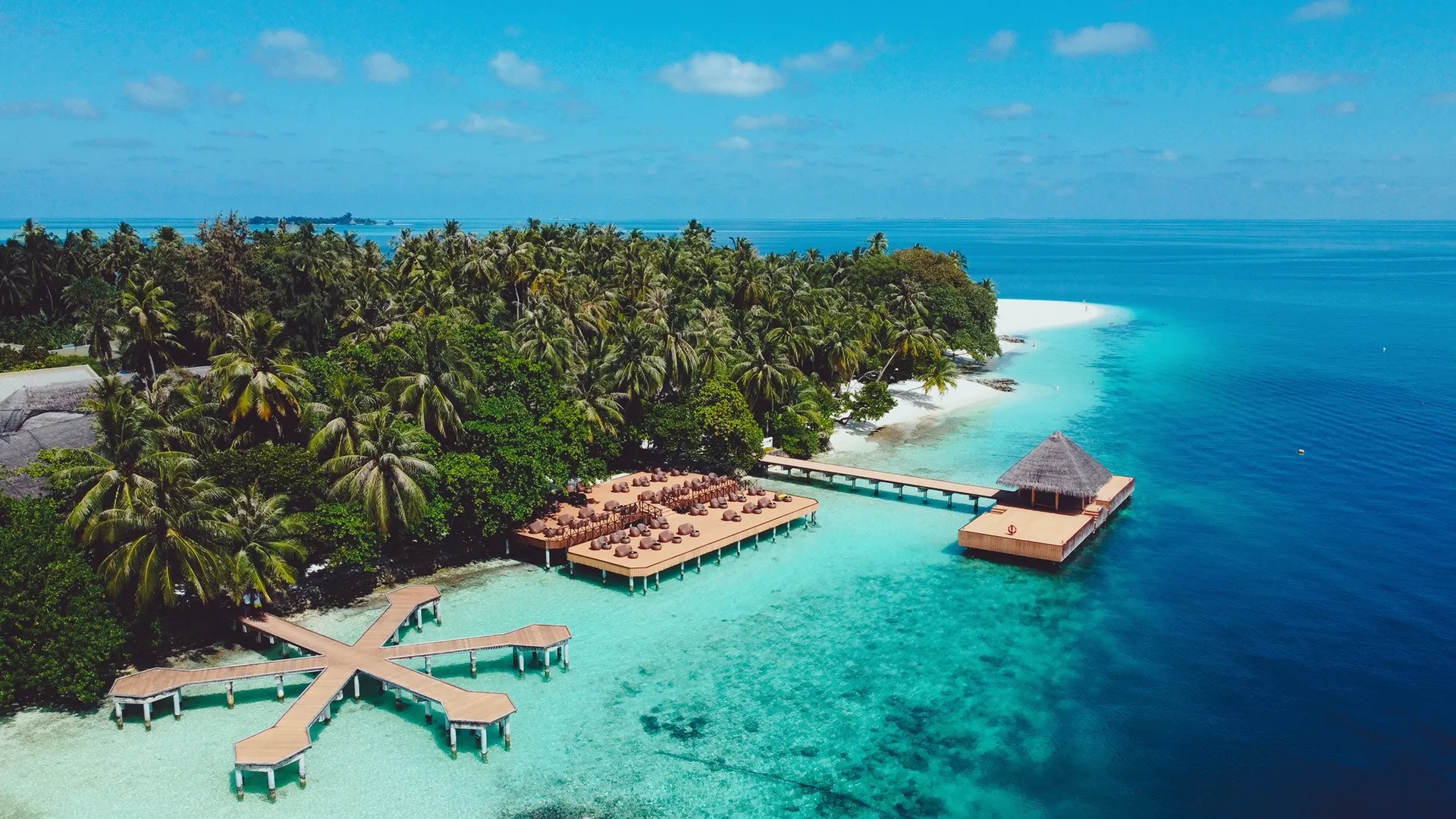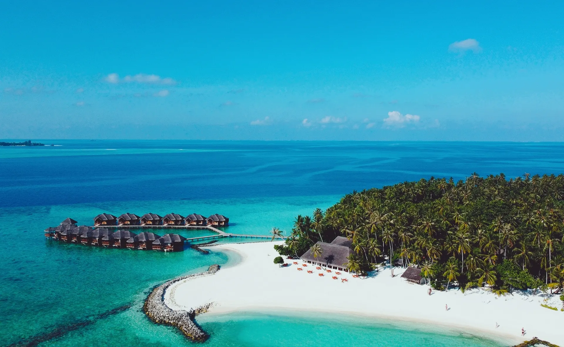 Het resort bevindt zich op het Zuidelijke Malé-atol, direct aan het strand.