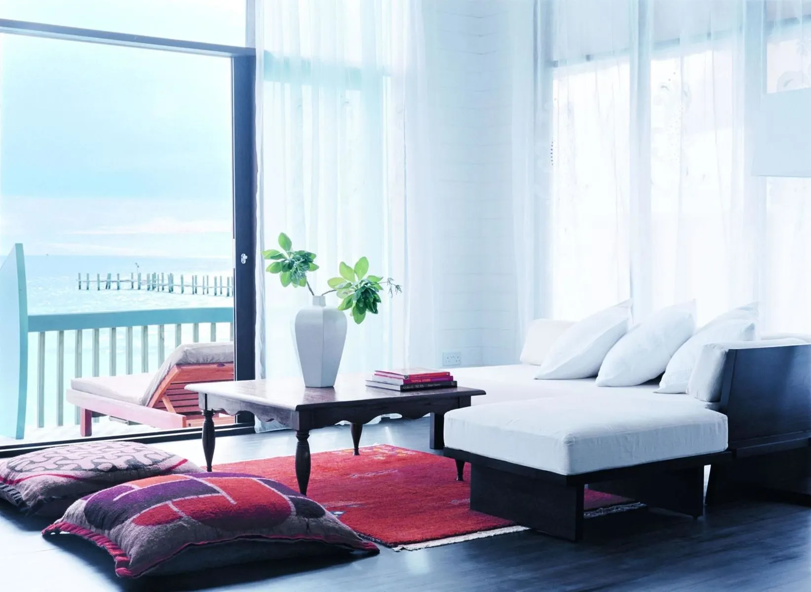 Gelegen in een rustiger gebied, weg van de belangrijkste resortcentra, biedt Cocoa Island ongestoorde rust te midden van de South Malé Atollen. Op slechts 40 minuten per speedboot van de Malé International Airport, kijkt dit luxe 5-sterren resort uit over serene, hemelsblauwe wateren. Het lange, smalle eiland, ongeveer 350 meter, beschikt over een pittoreske zandtong die verdwijnt met de getijden. Door het natuurlijke landschap van palmen, wilde zeedruiven en hibiscus te behouden, creëert het huisrif van het eiland een kristalheldere lagune vol met zeeleven, waaronder roggen en babyhaaien. De kalme, stromingsvrije wateren maken Cocoa Island ideaal voor gezinnen. Ontworpen door de Singaporese architect Cheong Yew Kuan, toont het resort een verfijnde mix van eigentijdse en inheemse stijlen met natuurlijke materialen. De 33 overwater bungalows, gelegen aan de zuidelijke rand van de lagune, zijn bereikbaar via planken wandelpaden en voorzien van Nieuw-Zeelands grenen met Kajan-rieten daken. Binnen creëren hoge, spantenplafonds en glanzende teakhouten vloeren een luchtige ambiance. Van vloer tot plafond reikende glazen ramen komen uit op privéterrassen, perfect om te loungen of om buiten te dineren. De strakke, luchtige interieurs, in tinten wit en blauw, roepen een Hamptons strandhut-sfeer op. Het restaurant van het resort, Ufaa, wat gelukkig betekent in de Maldivische taal, maakt de serene ervaring compleet.