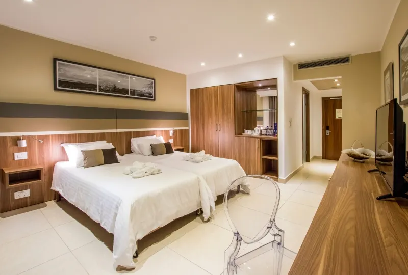 Kamerpakketten inclusief maaltijden zijn exclusief maaltijdkosten voor kinderen. Daarom worden er kosten in rekening gebracht voor kinderen van 12 jaar en ouder. Kamerpakketten inclusief maaltijden zijn exclusief maaltijdkosten voor kinderen. Daarom worden er kosten in rekening gebracht voor kinderen van 12 jaar en ouder. We zijn gelegen in de badplaats Qawra, met prachtig uitzicht op de Middellandse Zee en St Paul's Islands. Onze kusthemel biedt een verscheidenheid aan restaurants, winkels en entertainment. We bevinden ons op drie minuten lopen van het busstation, waardoor je verbinding hebt met alle bezienswaardigheden. We bieden een privéstrandclub en een grote vergaderfaciliteit voor maximaal 800 gasten.