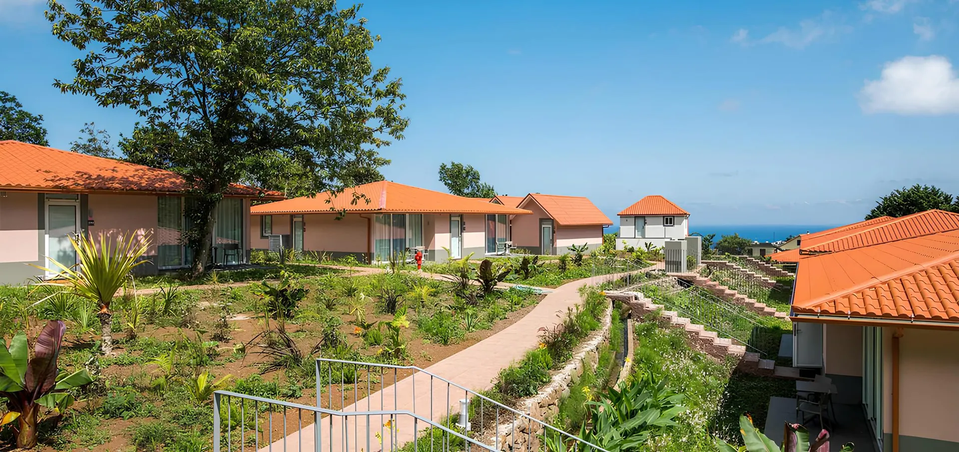 Kleinschalig park met comfortabele bungalows verspreid in een groene setting, een doolhof van bloemen, planten en zelfs riviertjes over het terrein, met twee zwembaden en zelfs een rozentuin. Schitterend !