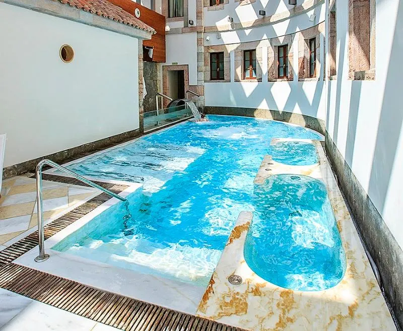 Op slechts 8 km van Oviedo, gelegen in de Las Caldas-vallei, ligt het 5-sterren Grand Hotel, onderdeel van het resort Las Caldas Villa Termal. Dit klassieke luxehotel combineert naadloos moderne voorzieningen met de charme van zijn gerestaureerde gebouwen uit de 18e, 19e en vroege 20e eeuw. De 78 kamers bieden een stijlvolle fusie van eigentijds en klassiek design, met name de kamers in de originele structuur uit de 18e eeuw. Gasten kunnen genieten van twee spa's: de historische El Manantial (18e eeuw) en de Aquaxana spa met zijn verwarmde buitenzwembad. Extra voorzieningen zijn onder andere restaurant Viator, parkeergelegenheid, een ultramodern fitnesscentrum van 400 m² en het congrescentrum Viator, met veelzijdige vergaderzalen voor maximaal 350 personen. Het hotel beschikt ook over 8. 000 m² prachtig aangelegde tuinen en terrassen, ideaal voor evenementen in de buitenlucht.