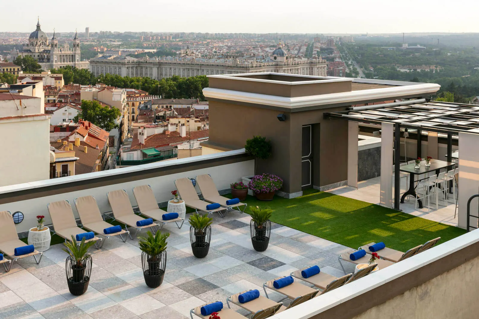 Dit edele hotel is geliefd vanwege zijn centrale ligging in het hart van Madrid, aan de beroemde Gran Via. Het wordt omgeven door winkels, banken, modeboetiekjes, bioscopen, theaters en discotheken. Naar de historische stadskern van Madrid met het Koninklijk paleis, de opera, de Puerta del Sol, Cibeles, Del Prado, Reina Sofia en het Thyssen Museum is het niet ver. Direct voor de deur van het hotel bevindt zich een bushalte en het metrostation Santo Domingo.