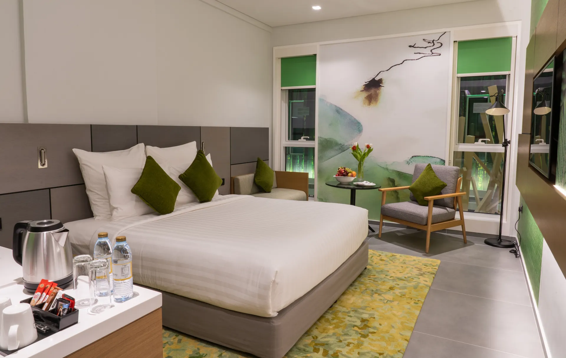 In de kamers bevinden zich een keuken en een badkamer, voor een aangenaam luchtklimaat zorgt airconditioning. De kamers beschikken over een queensize bed en een slaapbank. Extra bedden kunnen worden aangevraagd. Bovendien zijn een kluis, een minibar en een bureau beschikbaar. Een mini-koelkast en een thee-/koffiezetapparaat behoren eveneens tot de standaardvoorzieningen. Een broekenpers is voor het extra comfort van de gasten verkrijgbaar. Bovendien zijn een telefoon, een televisie en Wi-Fi (kosteloos) beschikbaar. Een douche behoort tot de inrichting van de badkamers. Als bijzondere optie kunnen de gasten genieten van cosmetische producten en een handdoekenset. Het hotel beschikt over gezinskamers en niet-rokerskamers.